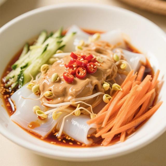 夏天最受歡迎的涼皮和涼面,配上麻醬汁才是絕配。將涼皮或煮好晾涼的面條放入碗中,加入黃瓜絲、豆芽、胡蘿卜絲等配菜,淋上麻醬汁,再加點辣椒油,攪拌均勻,一碗下肚,暑氣全消。
