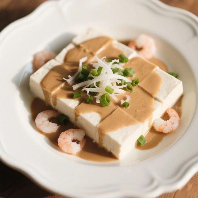 嫩豆腐切成小塊,放入開水中焯燙1 - 2分鐘,撈出瀝干水分。淋上麻醬汁,撒上蔥花和蝦皮,簡單又美味,豆腐的嫩滑搭配麻醬汁的醇厚,口感層次豐富。